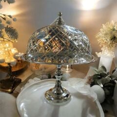 LAMEDORE DC OVAL AYAKLI CAM KAPAKLI KEK STANDI NICKEL 30,5X24,5X38 CM
