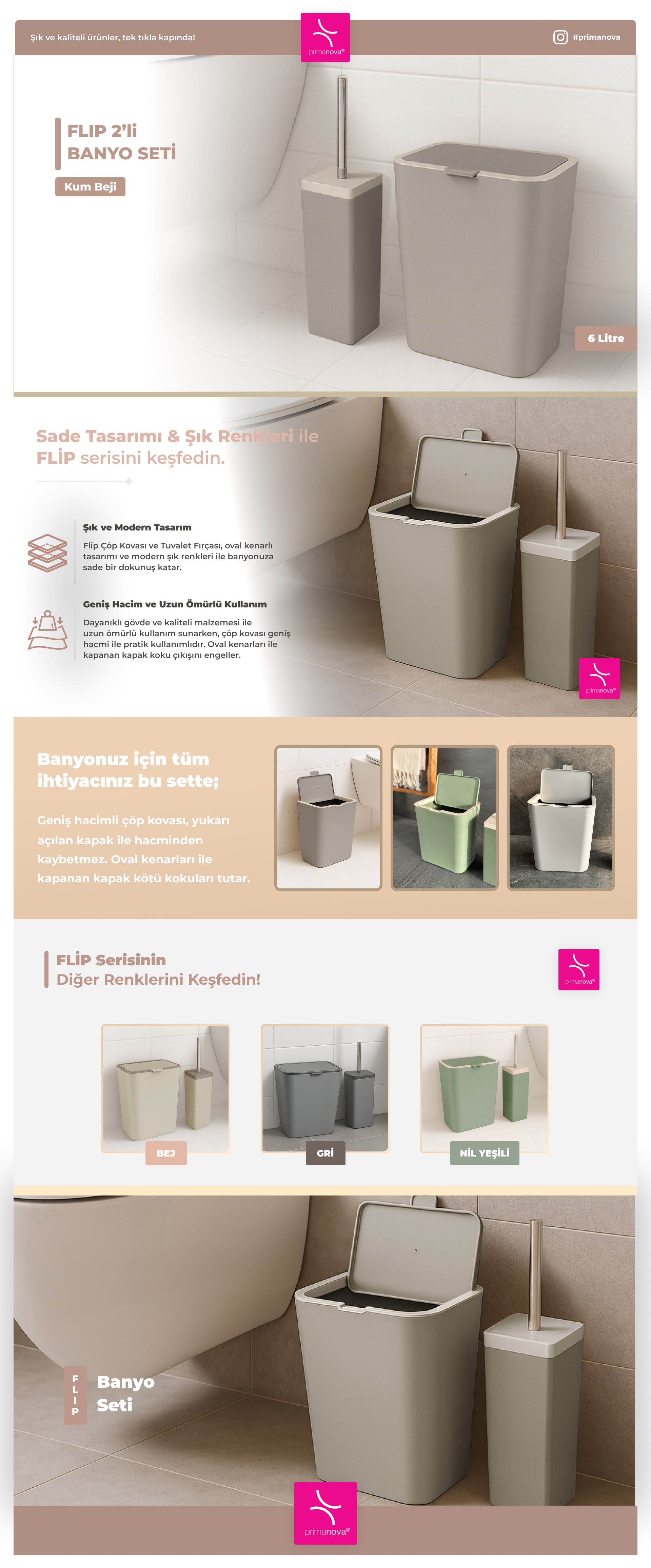 Primanova Flip 2'li Banyo Seti - Koyu Bej